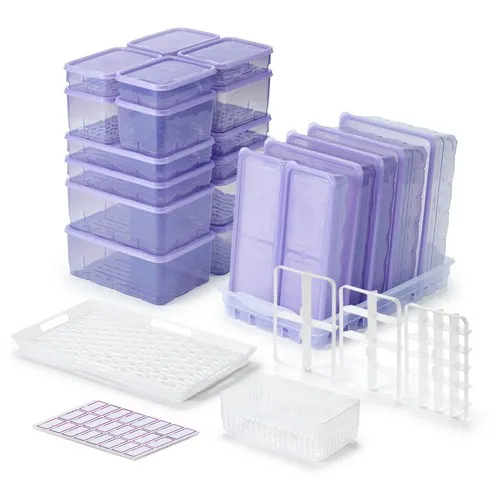 1. 땡스소윤 냉동실 전용 밀폐용기 29p 세트 쿨라벤더, 1세트, 밀폐용기 22종 + 채반 2종 + 칸막이 3종 + 트레이 + 견출지 96p