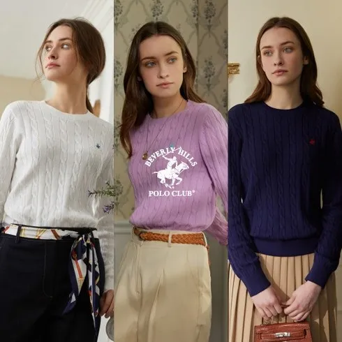 7. 신세계라이브쇼핑 24SS 비버리힐즈폴로클럽 여성 오가닉 코튼 케이블니트 3종
