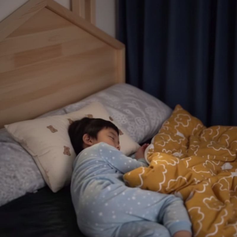하이라이트 컷: 아이가 잠들어 있는 침대 곁 (가장 효과가 큽니다)