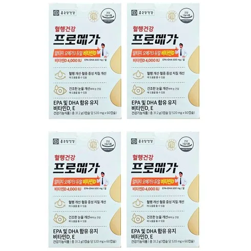 3. 종근당건강 프로메가 알티지 오메가3 듀얼 비타민D 520mg 60캡슐 9박스, 60정, 4개