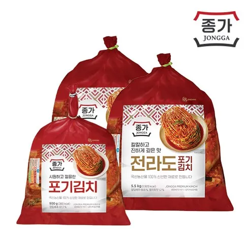 5. (종가집) 종가 전라도식 포기김치 11kg (5.5kgX2) + 포기김치(중부식) 900g, 단품