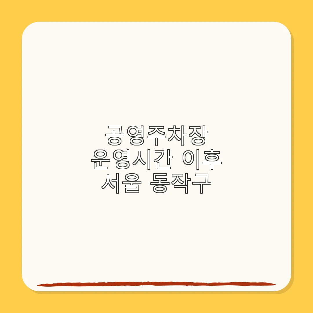서울 동작구의 공영주차장은 주민과 방문객들에게 필수적인 주차 공간을 제공합니다. 하지만 공영주차장을 이용하는 많은 사람들은 운영시간 이후에도 주차가 가능한지에 대해 궁금해합니다. 이번 포스팅에서는 서울 동작구 공영주차장의 운영시간, 이용 규칙 및 운영시간 이후의 주차 가능 여부에 대해 자세히 알아보겠습니다. 서울 동작구 공영주차장 바로가기 모두의 주차장 앱 다운로드 아이파킹 앱 다운로드 파킹프렌즈 앱 … 더 읽기